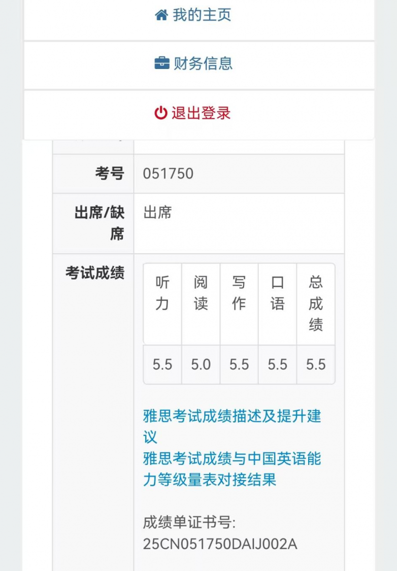 经过40天的全日制系统学习和真题冲刺,我顺利参加雅思考试,最终拿到了5.5分的目标分数,各单项分数均有明显提升:听力5.5分、阅读5.5分、写作5.5分、口语5.0分,成功实现了1.5分的逆袭,顺利达到了海外院校的语言要求。